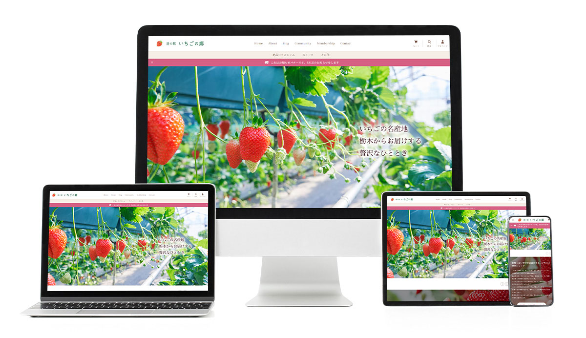 テーマカラーや、見出しフォント等の指定を行うことで、ショップ全体のテイストをカスタマイズ可能です。
